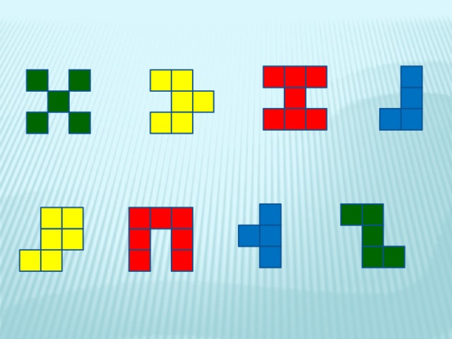 6 квадратов – желтым, 4 – синим, 7 - красным