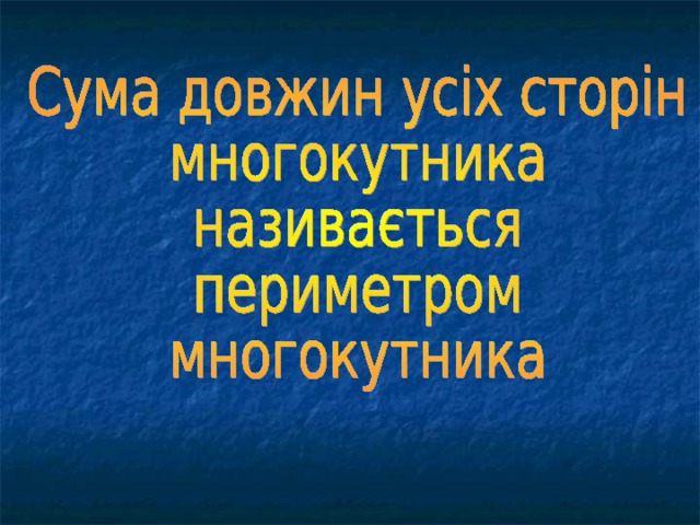 Сума довжин усіх сторін многокутника називається периметром многокутника.