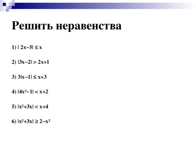 2 x +1 3) 3 |x−1| ≤ x+3 4) |4x²−1| 5) |x²+3x| 6) |x²+3x| ≥ 2−x² " width="640"