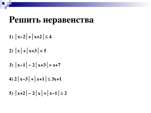 x+7 4) 2│x − 3│+│x+1│ ≤ 3x+1 5) │x+2│ − 2│x│+│x − 1│ ≥ 2 " width="640"