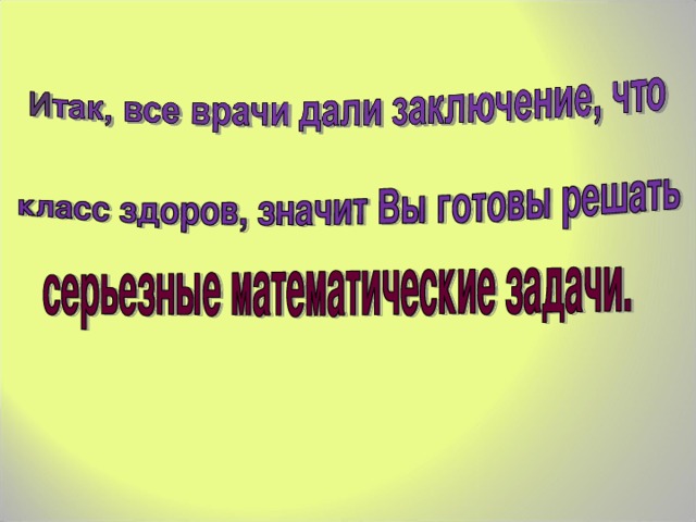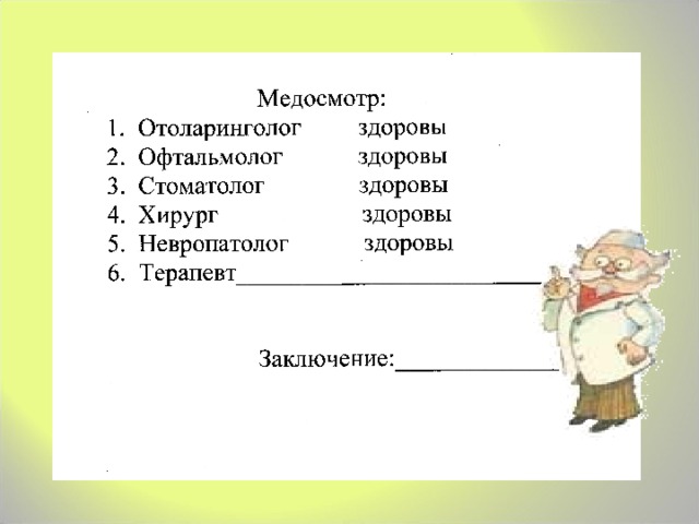 4. Учитель. С заданием справились хорошо. Диагноз «здоровы» (слайды 9, 10, 11)