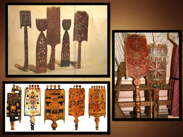 Пожалуй, ни одно орудие крестьянского труда не украшалось так многообразно, любовно, как прялка. Дух захватывает от силы народной фантазии и искусства, когда видишь резные, расписные, гребневые, теремковые, светлые и тёмные, детские и взрослые прялки, прялицы, пресницы всех уголков России!