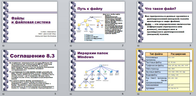 До появления операционной системы Windows 95 на большинстве компьютеров IBM PC работала операционная система MS-DOS, в которой действовали весьма строгие правила присвоения имен файлам. Эти правила называют соглашением 8.3
