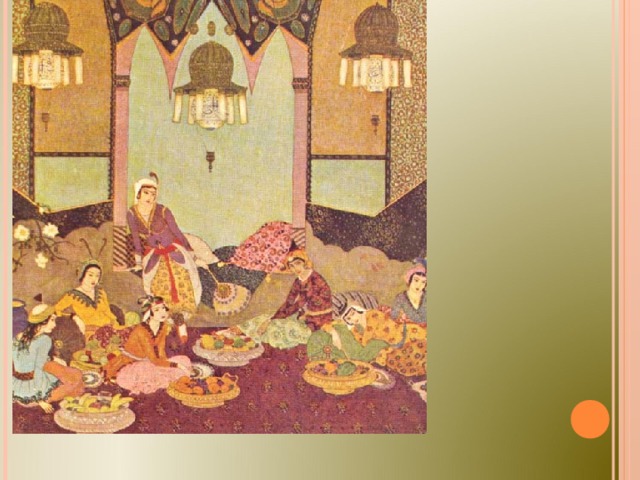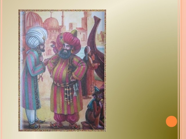 - Средневековый Багдад – это один из красивейших городов. Купола дворцов, павильоны, каналы и водоёмы, зверинцы и пышные цветники, деревья с золотыми стволами и серебряными листьями, шумные базары, на которых состязались сказители, повествуя об удивительных приключениях Синдбада , прекрасной царевне Будур , жестоком царе Шахрияре и покорившей его Шахерезаде – это все Багдад. И вот на 31 ночь начала Шахерезада рассказывать сказку о Синдбаде-мореходе.