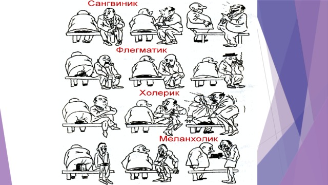 Сангвиник быстро приспосабливается к новым условиям, быстро сходится с людьми, общителен. Чувства легко возникают и сменяются, эмоциональные переживания, как правило, неглубоки. Мимика богатая, подвижная, выразительная.
