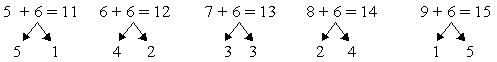 0+ 6 ,3+3, 1 +5, 2+4
