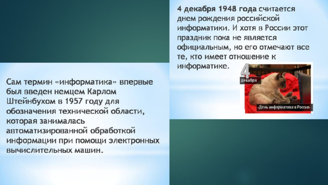 - Информатика – это одна из самых молодых наук. Она изучает свойства и закономерности информации, методы ее использования в жизнедеятельности человека.