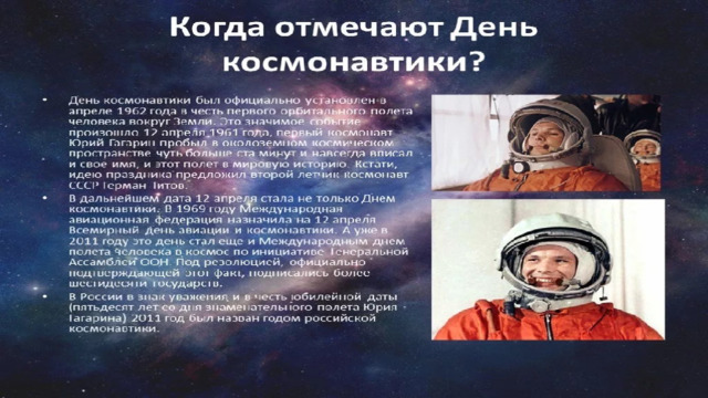 - КОГДА ОТМЕЧАЮТ ДЕНЬ КОСМОНАВТИКИ