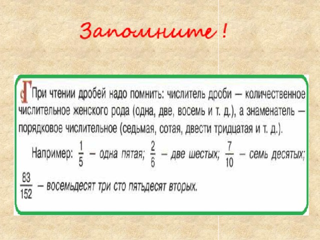 - Развивать умение читать и записывать обыкновенную дробь по числителю и знаменателю