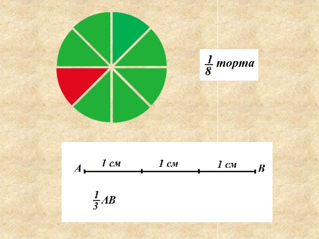 Число 8 под чертой показывает, на сколько равных частей разделили целое.