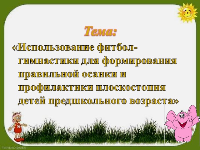 В работе использовалась методика Т.С.Овчинниковой, и А.А.Потапчук, (кандидаты медицинских наук), которые предложили собственные разработки коррекции движений у дошкольников с проблемами развития в осанке на фитболах. Впервые фитболы стали использоваться в' лечебных целях с середины 50-х гг.ХХ столетия швейцарским врачом-физиотерапевтом Сюзан Кляйн Фогельбах для больных ДЦП.