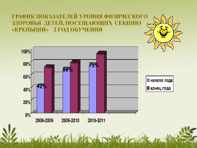 Уровень заболеваемости: - в результате этой работы дети стали реже болеть. В период с 2010 по 2012 годы отмечено снижение заболеваемости на 22%;