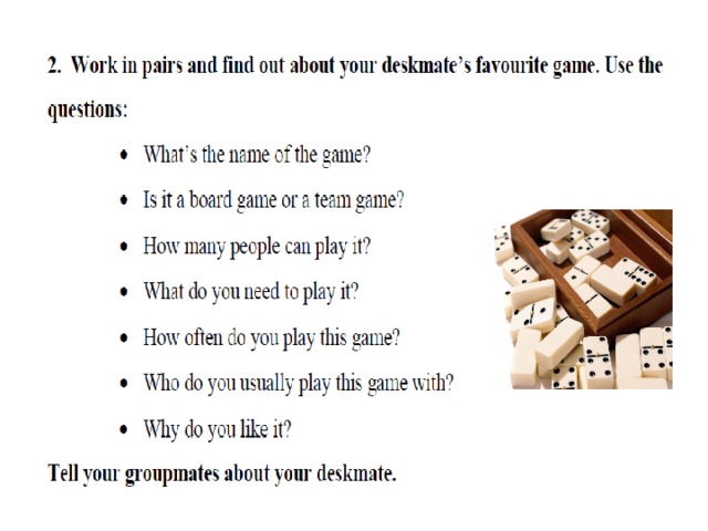 Ex. 9 p. 59 Listen and match the speakers to the activities they like:
