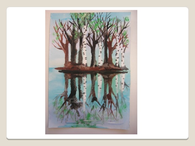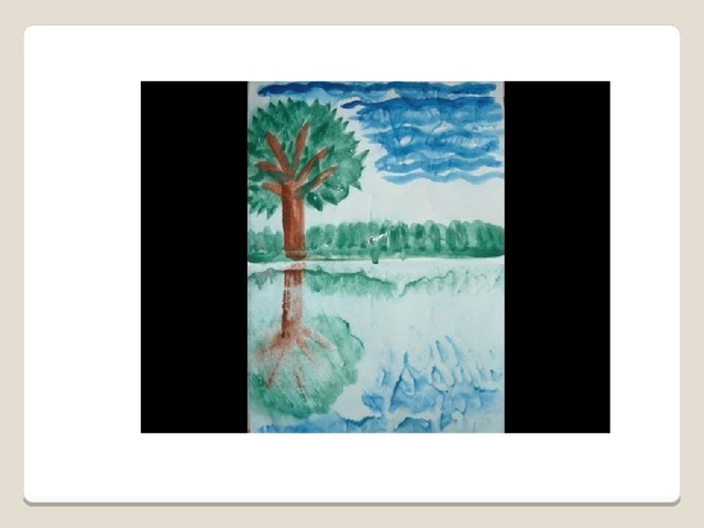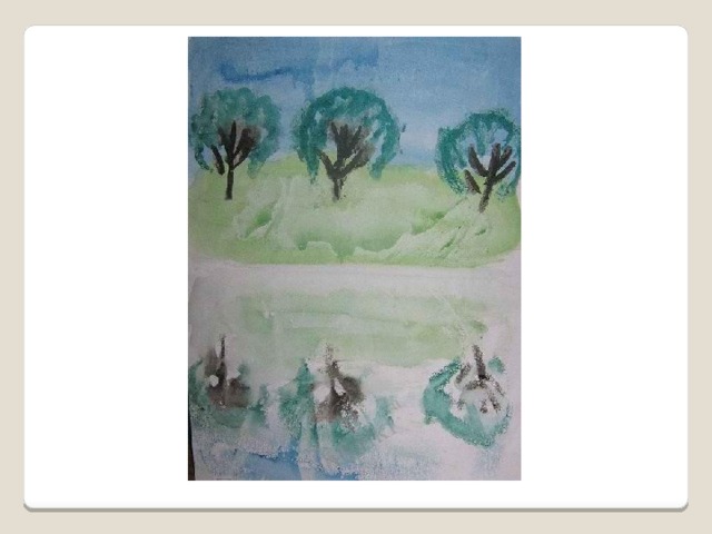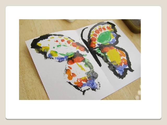 - На одной половине что-нибудь нарисуйте, к примеру, половину бабочки, пейзаж. (Рисунок должен быть мокрым)