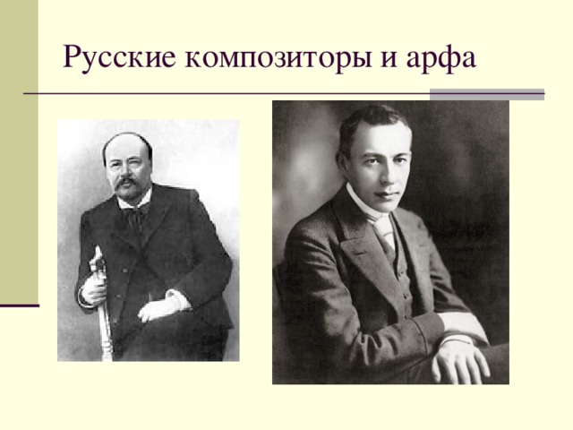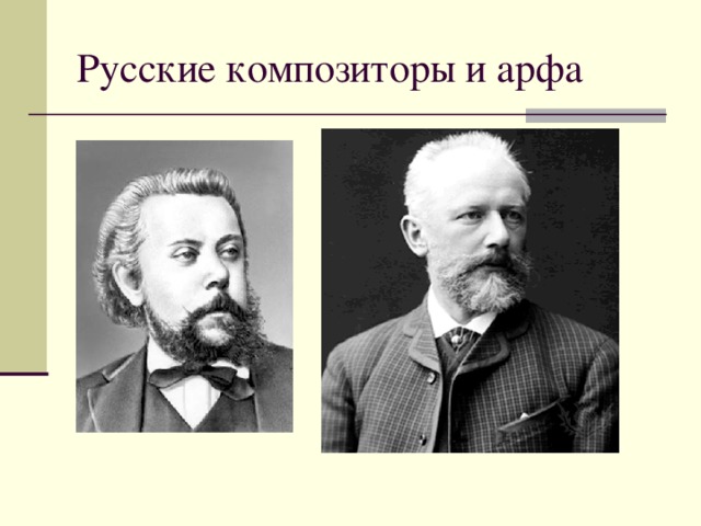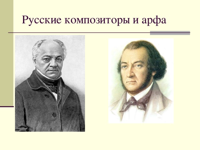 Арфу широко использовали ведущие русские композиторы: А. Верстовский, А. Алябьев, М. Глинка, А. Даргомыжский, М Мусоргский, П. Чайковский, А. Лядов, С. Рахманинов