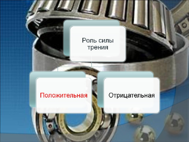 Подшипники помогают уменьшит силу трения в десятки раз за счет замены трения качения трением скольжения