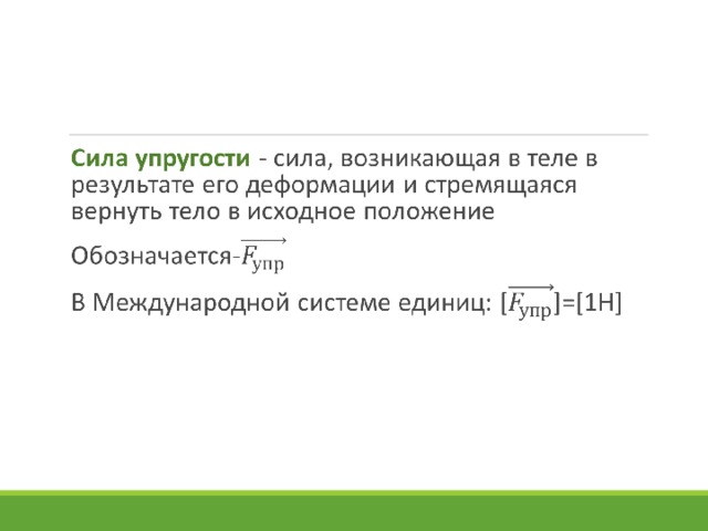 - Сила упругости, возникающая при упругой деформации растяжения или сжатия тела, пропорциональна изменению длины тела