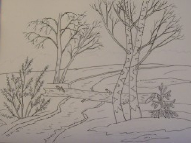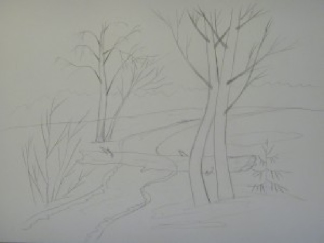 1 этап - выполни набросок картины в карандаше