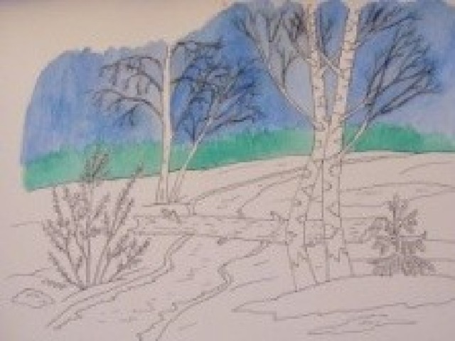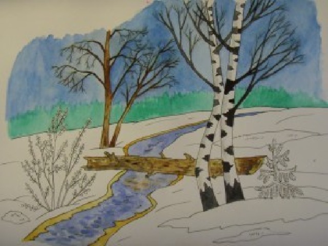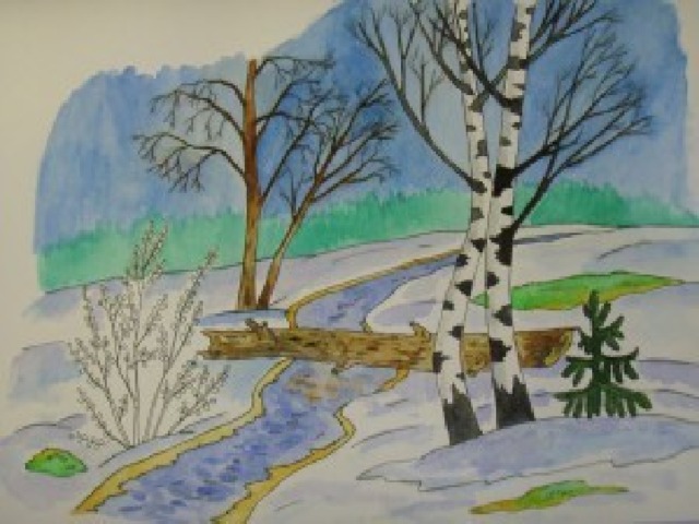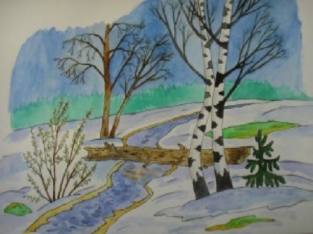 Этапы работы над весенним пейзажем