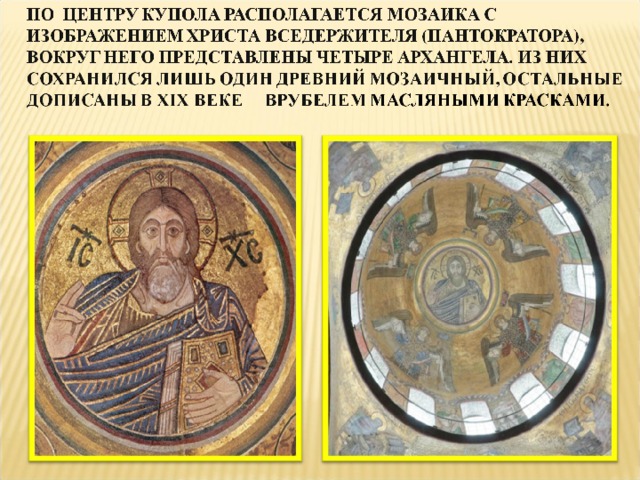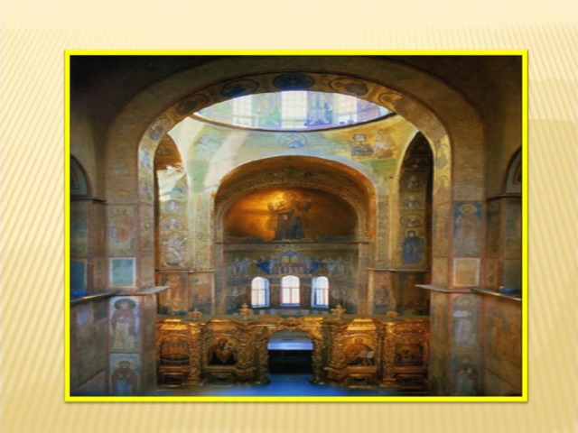ИНТЕРЬЕР СОБОРА СОХРАНИЛ БОЛЬШОЕ КОЛИЧЕСТВО ФРЕСОК И МОЗАИК XI ВЕКА, ВЫПОЛНЕННЫХ ЛУЧШИМИ ВИЗАНТИЙСКИМИ МАСТЕРАМИ. ПАЛИТРА МОЗАИК НАСЧИТЫВАЕТ 177 ОТТЕНКОВ. СТИЛЬ МОЗАИК СООТВЕТСТВУЕТ ВИЗАНТИЙСКОМУ ИСКУССТВУ ПЕРВОЙ ПОЛОВИНЫ XI ВЕКА.