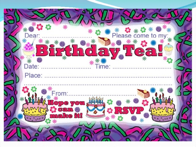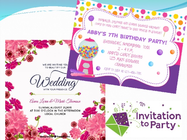 How many abbreviated wordscan you find in the invitation cards? Guess what they stand for