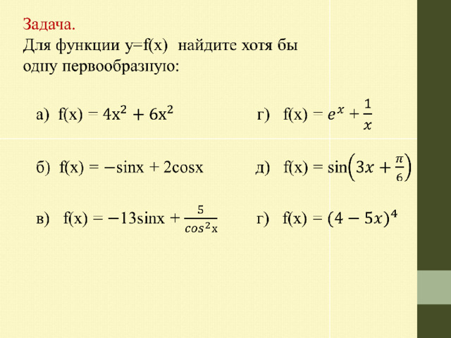 Для функции y=f(x) найдите хотя бы одну первообразную:
