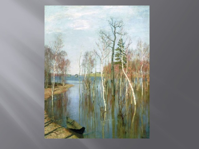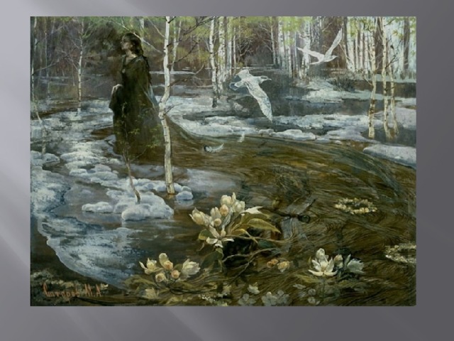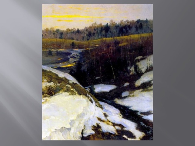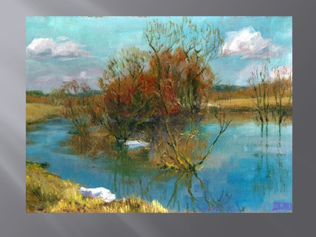 - В рисунке обязательно должны быть весенние ручьи, извивающиеся змейками, задумчивые и тихие, бегущие наперегонки. Задание посвящено ритмической организации места с помощью линий. Ритм линий – важнейшее средство композиционной выразительности.