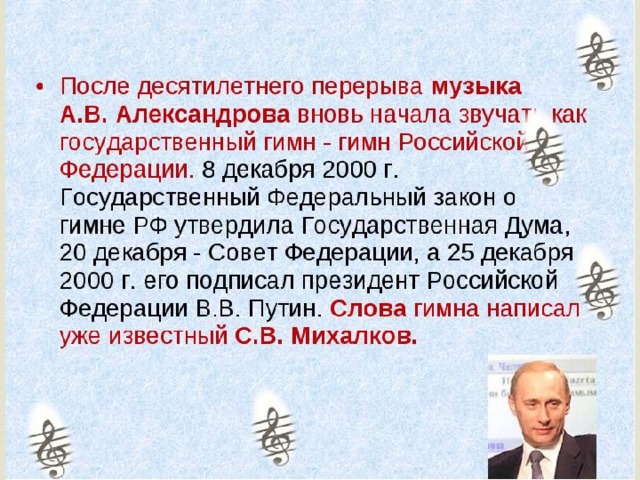 Государственный гимн Российской Федерации должен исполняться в точном соответствии с утвержденными музыкальной редакцией и текстом.