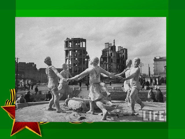 «Дом Павлова» 24 бойца 9-ти национальностей стойко оборонялись в этом доме 58 суток. Для сравнения: о ккупация Франции заняла лишь 44 дня, а Польши — 36 суток