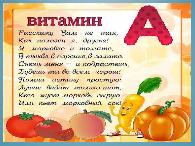 Витамин А – это витамин роста. Ещё он помогает нашим глазам сохранять зрение. Найдём мы его в молоке.