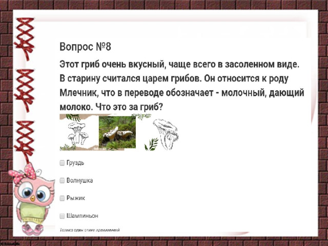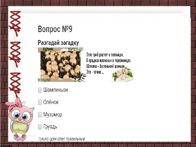 Презентация. "Викторина Знатоки грибов" (5.3 MB)