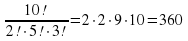 Решение. Надо найти число кортежей длины 8, имеющих состав (2, 2, 2, 1, 1). Число таких перестановок с повторениями равно