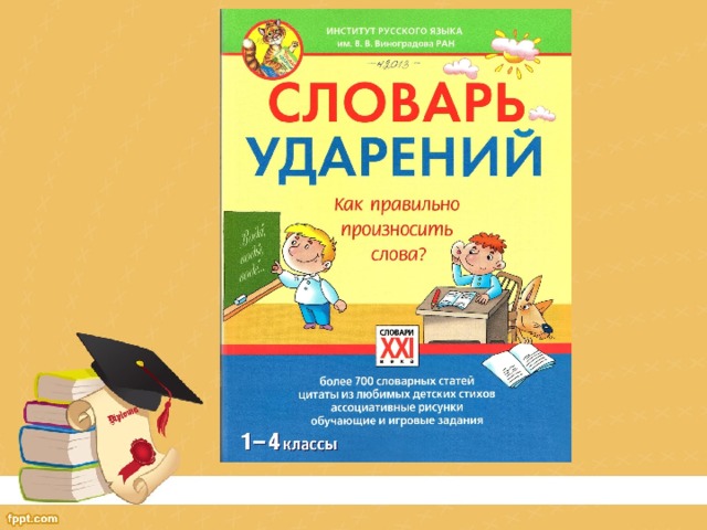 В этом словаре собраны слова, которые трудно написать правильно. К таким словам невозможно (или очень сложно) подобрать проверочное слово, их нельзя написать «по правилу», а может быть , это правило вы ещё не изучали. Во-вторых, здесь собрана большая языковая информация о словарных словах, чтобы вы познакомились поближе и «подружились» с ними.