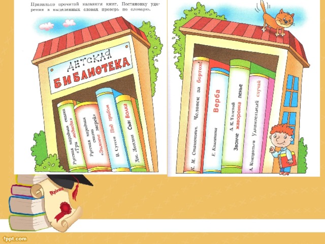 БИБЛИОТЕКАРЬ: Чтобы усвоить правила орфографии, надо хорошо знать состав слова и законы словообразования. (Помните, Приставки, суффиксы, окончания...)