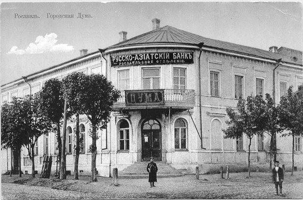Первый этаж смежного с гимназией здания в конце XIX в. (1897г.) занимала городская Дума, второй был отдан Рославльскому отделению Северного, а с 1910г. – Русско-Азиатского банка.Таким образом, к 1914г. в Рославле насчитывалось 18 учебных заведений Министерства народного просвещения. Частных школ не было.