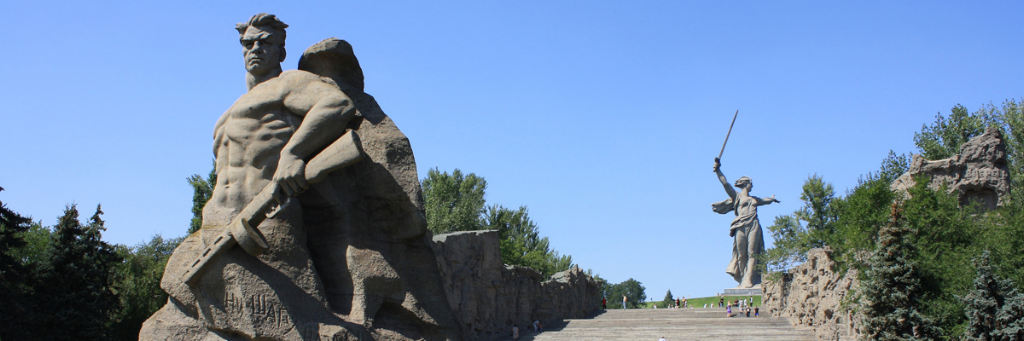 На главной точке страны, высоте 102 метра, где некогда звучали пулеметы и взрывы от снарядов, сейчас расположен мемориал Мамаев Курган. Пожалуй, это самый масштабный мемориальный комплекс, посвященный победе советских солдат в Великой Отечественной войне.