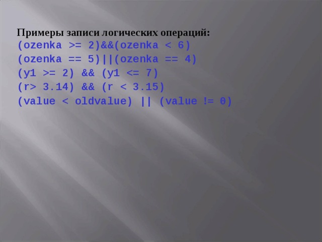 = 2)&&( ozenka ) ( ozenka = = 5 ) || ( ozenka == 4 ) ( y1 = 2) && (y1 (r 3.14) && (r 5 ) (value || (value != 0) " width="640"