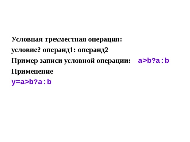 ) { операторы 3 ;} Операторы 3 выполняются только в случае истинности условия. Если условие ложно, то условный оператор эквивалентен «пустому» оператору. Перед закрывающей операторной скобкой символ " ; " записывается обязательно. Условные операторы можно вкладывать друг в друга. " width="640"