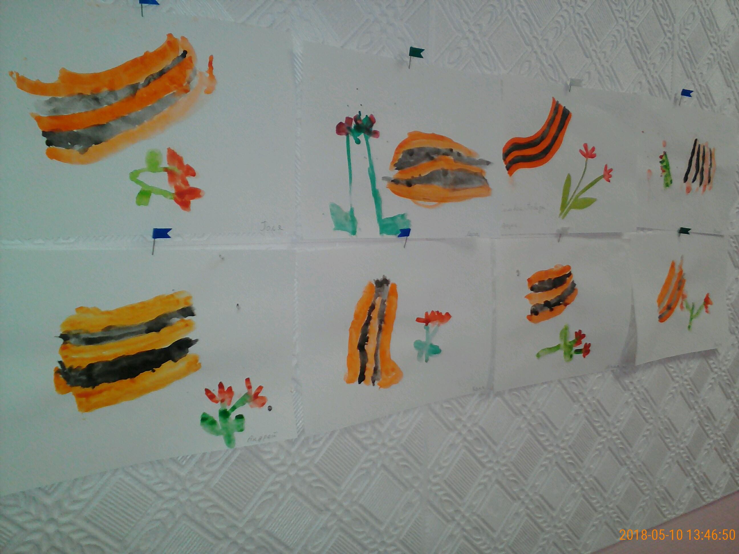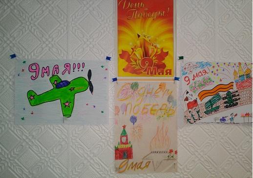 В дошкольном возрасте преобладает наглядно-образное мышление и родителям было предложено совместно с детьми выполнить рисунки ко Дню Победы, а также рассказать детям о родственниках воевавших в ВОВ и о тружениках тыла.
