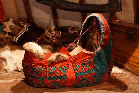 Некоторые народы делали переносные люльки, в которых было удобно носить ребёнка с собой. Это связано с тем, что жители севера кочевники и младенцы вместе с родителями перемещаются на оленях в самые лютые морозы (Приложение 3).