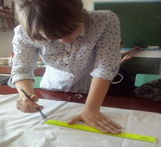 Сняла размеры экспоната. Сделала расчеты и сделала выкройку на ткани.
