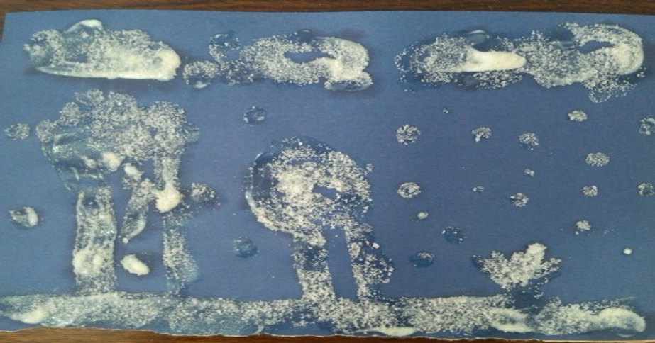 3. Материал для рисования: альбом для рисования, соль, клей ПВА, гуашь.