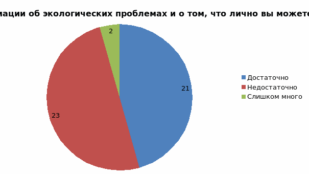 Шестой вопрос о получении информации об экологических проблемах показал, что 45.7% считают, что получают достаточно информации, 50% считают, что информации недостаточно, и всего 4.3% утверждают, что информации слишком много. Это указывает на необходимость улучшения доступности и качества информации об экологических проблемах для молодежи.