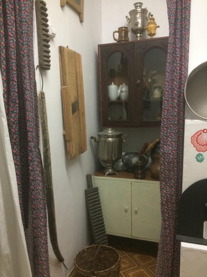В каждом краеведческом музее имеется подобная экспозиция, этим мало кого можно удивить. Но нашей целью было не сделать музей из избы, а найти синтез взаимоотношений между экспонатом и музеем, экспонатом и образом, как запоминающиеся эмоциональные “музейные спектакли” со своими образами и формой и, главное, с авторским прочтением темы каждым ребенком.