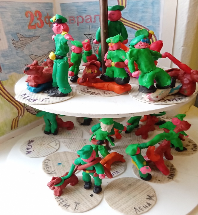 выставка детских работ: лепка «Пограничник с собакой»;