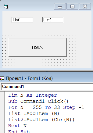 Проект "Коды символов" Visual Basic 6:0 Практическая работа