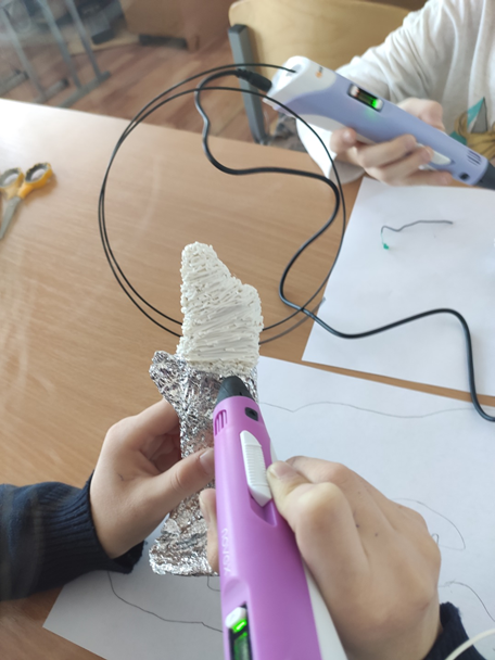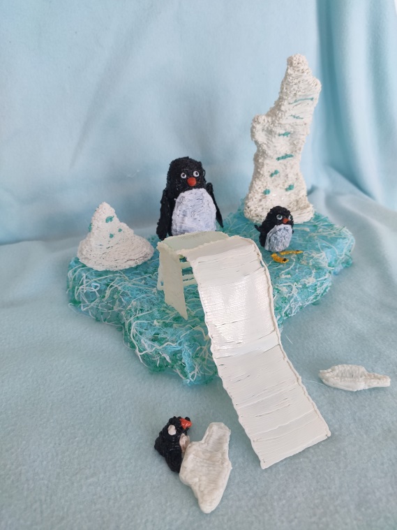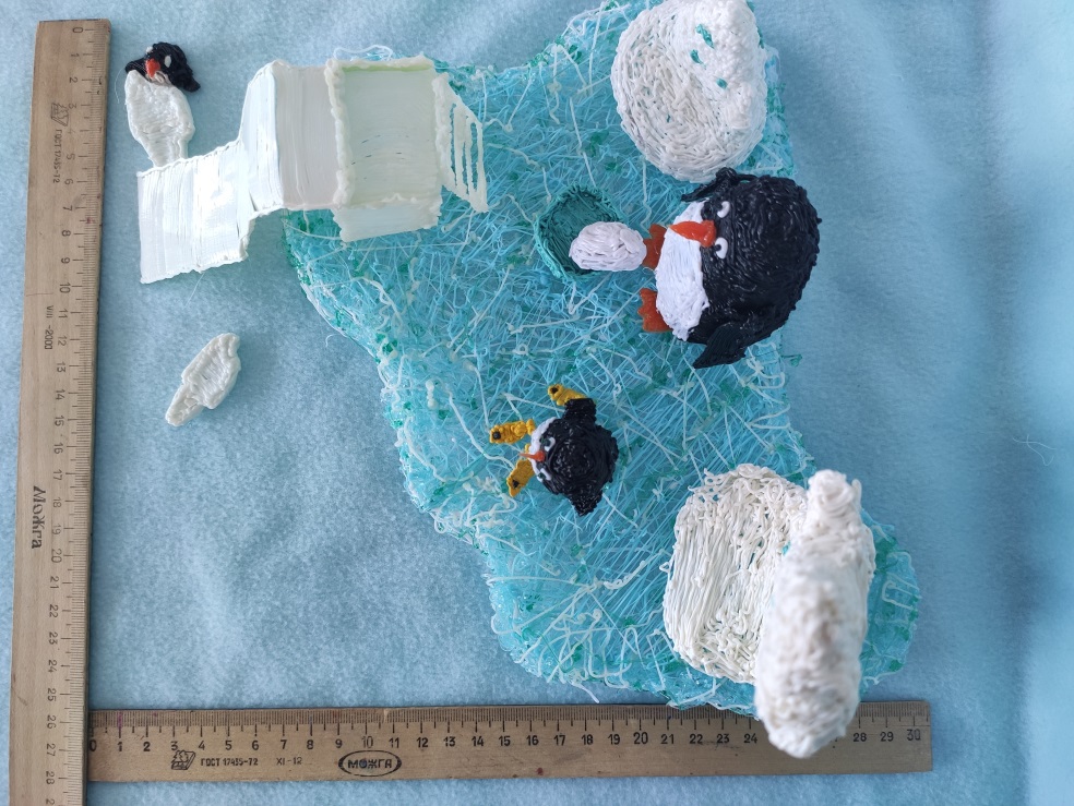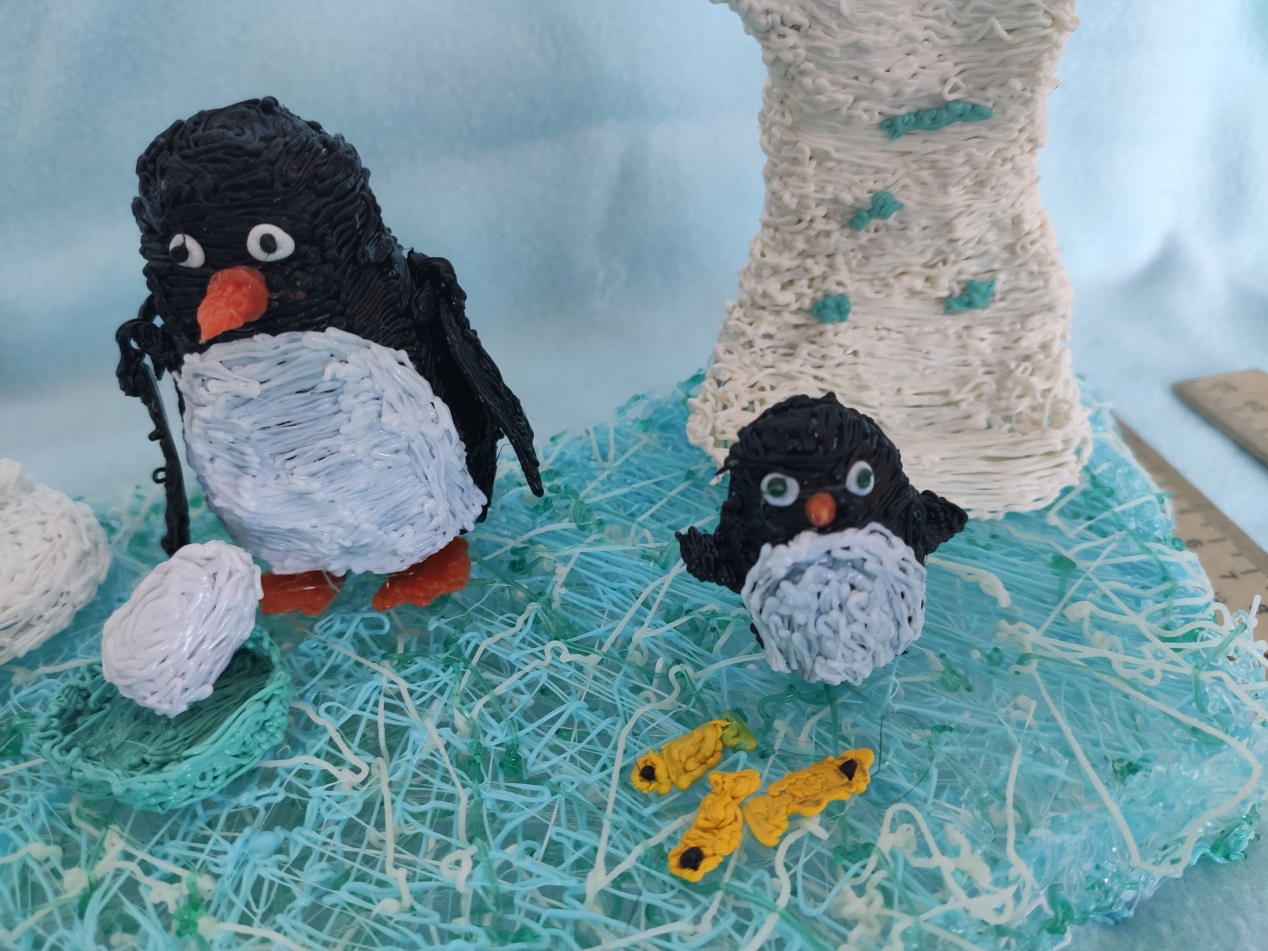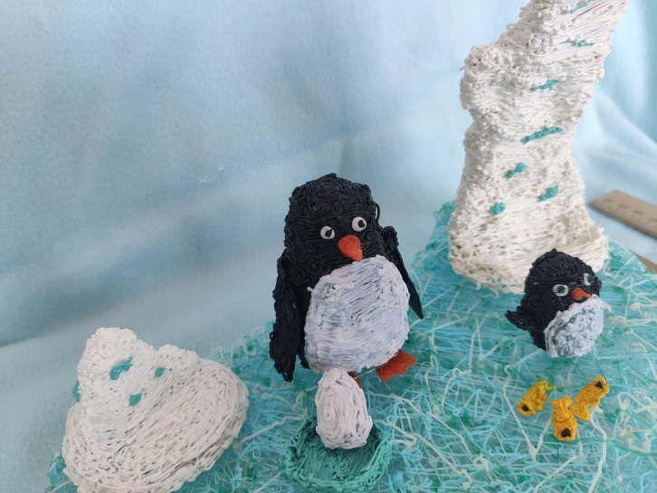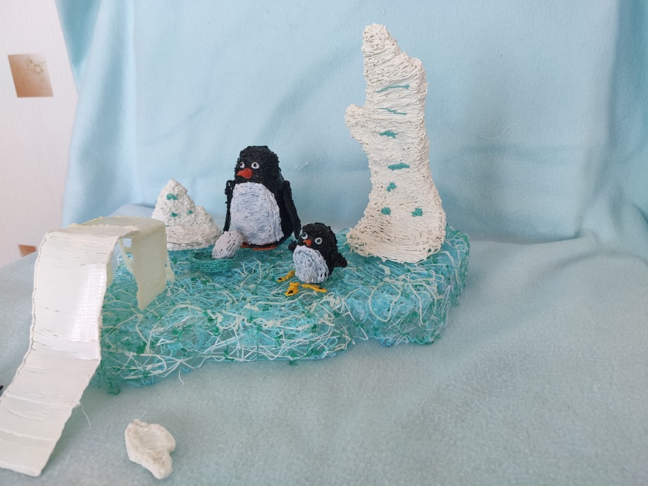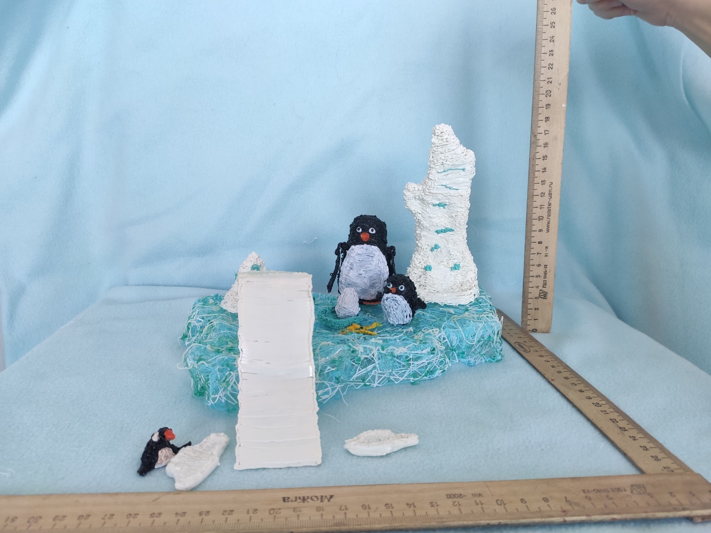 помощью технологий объёмного рисования 3Д ручкой, мы создали сцену с пингвинами в их естественной среде обитания.