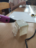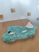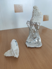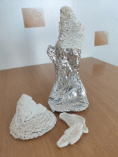 Айсберги. Для придания устойчивости айсбергу использовался каркас, сделанный из фольги. После выполнения работы, каркас из маленького айсберг был извлечен.