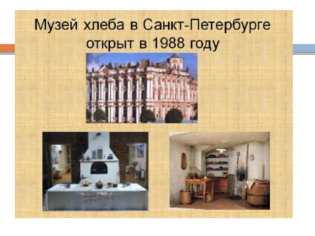 - Санкт-Петербургский музей хлеба - первый и на сегодняшний день последний музей в России, посвященный этому древнему продукту.