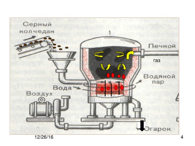 1 стадия. Обжиг пирита